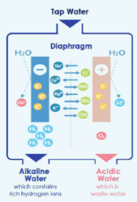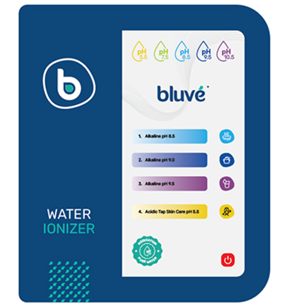 Bluve Water Ionizer uses electrolysis to separate water into acidic and alkaline components. An electric current splits water molecules into ions, which are separated using two electrodes — anode (acidic) and cathode (alkaline). The alkaline side is rich in hydroxyl ions (OH-), while the acidic side has more hydrogen ions (H+).